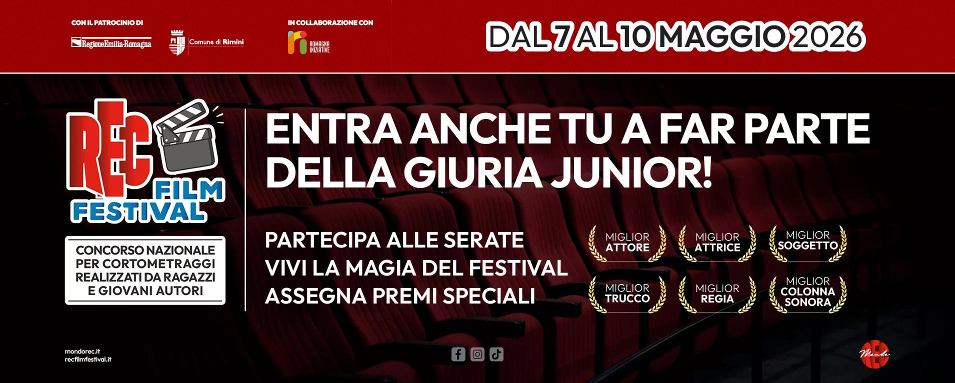 Da giovedì 7 a domenica 10 maggio 2026 a Rimini, presso il Teatro Tarkovskij, si tiene la nuova edizione del REC Film Festival, concorso nazionale per cortometraggi realizzati da ragazzi e giovani autori. Si tratta di una rassegna interamente dedicata all’arte cinematografica e al suo rapporto con l’universo giovanile: il cinema diviene infatti un ottimo strumento di aggregazione creativa, stimolo alla riflessione e opportunità per rendere protagoniste le nuove generazioni, attraverso la costruzione di brevi film, pensati e girati nei più svariati contesti sociali (scuole, accademie, associazioni, gruppi informali …).